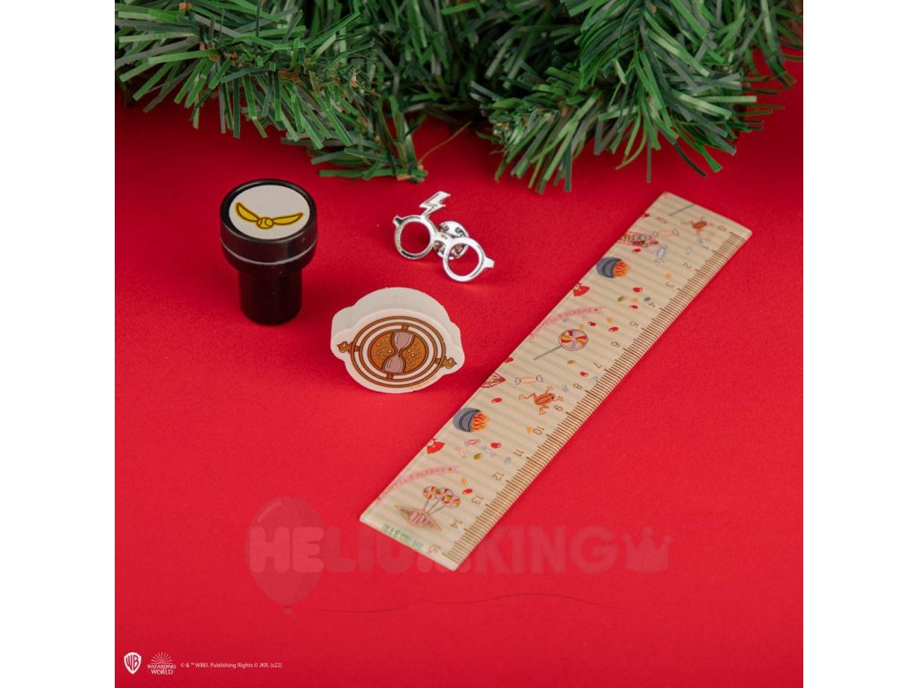 Advetný kalendár Harry Potter obsahuje 24 rôznych darčekov: Plyšová kľúčenka, Taška, Odznak, Náhrdelník s jazvou, Nálepky na telefón, Rolovacia páska, Tetovanie, Lepiace poznámky, Detské pečiatky, Kľúčenka, Blok na poznámky, Mini zvýrazňovače, Spinky, Samolepky + ďalšie prekvapenia.