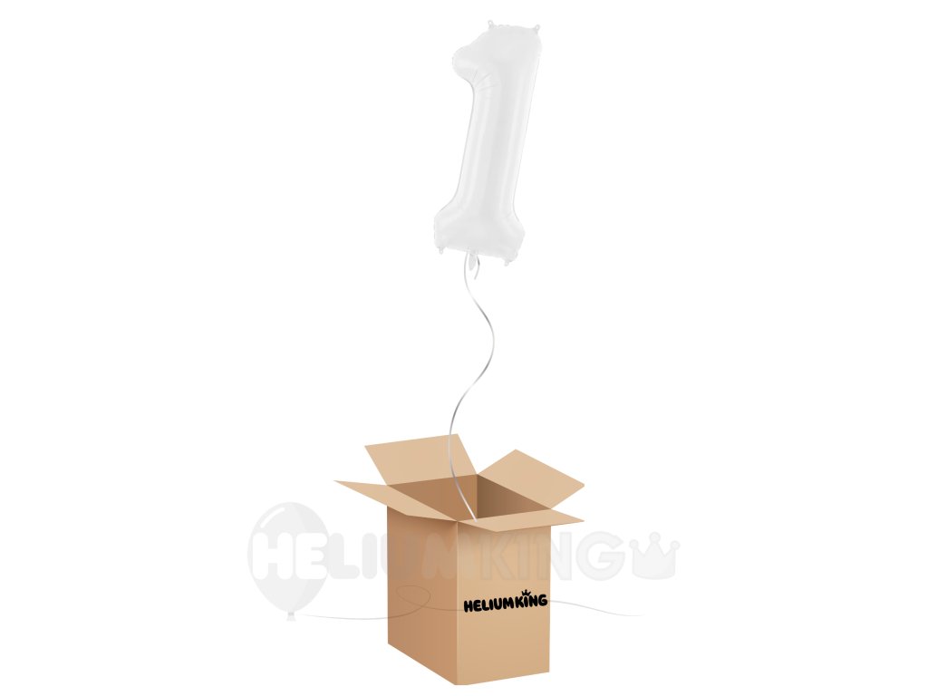 Balónový box - Narodeninové číslo 1 biely 86 cm