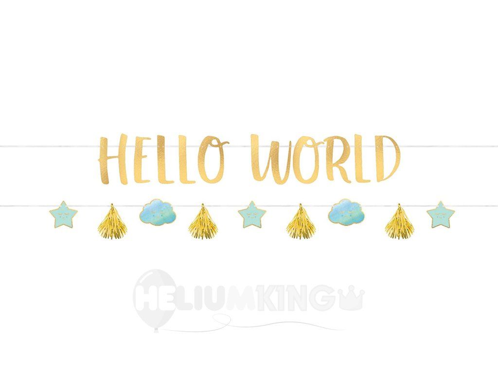 Banner s nápisom Hello world, s ktorým originálne privítate mamičku s bábätkom.