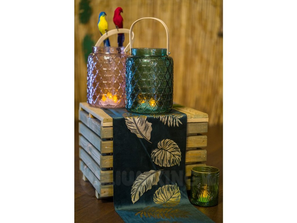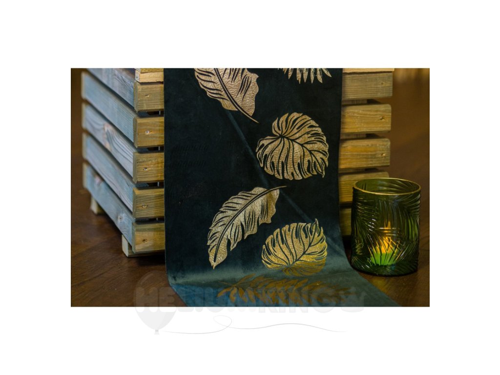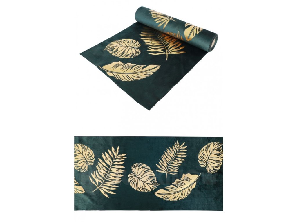 Behúň na stôl smaragd - Zlaté listy