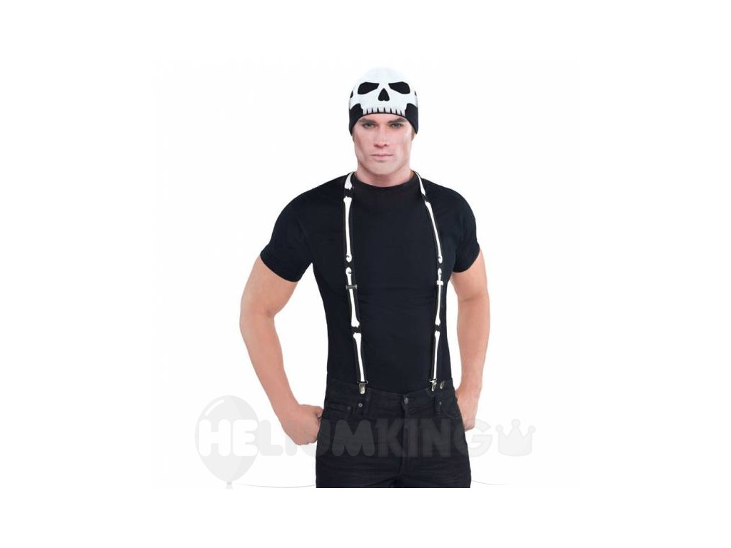 Váš karnevalový či Halloweensky kostým môže pôsobiť dôveryhodnejšie aj vďaka rôznym doplnkom, ako sú tieto čierne traky s dekoráciou kostí. Tento doplnok sa hodí ku karnevalovým kostýmom. Samozrejme to nechávame na Vašej predstavivosti.