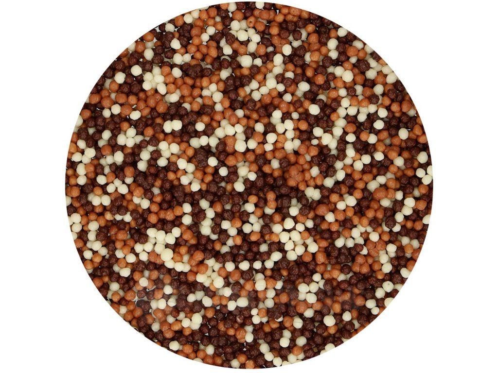 Čokoládové guličky sú obľúbeným a chutným zdobením cookies, muffins, krémových dezertov, zmrzlín, donuts aj tort. Zmes obsahuje chrumkavé čokoládové perličky v bielej, tmavej a mliečnej čokoláde.