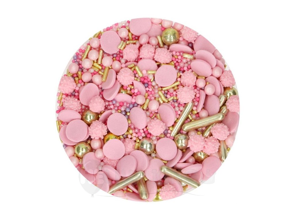 Cukrárske zdobenie v ružovom glamour prevedení je ideálne na posypanie tort s dievčenskou a rozprávkovou tématikou. Vhodné na posypanie tort, krémových dezertov, donuts, cupcakes, zmrzlín a ďalších cukroviniek.