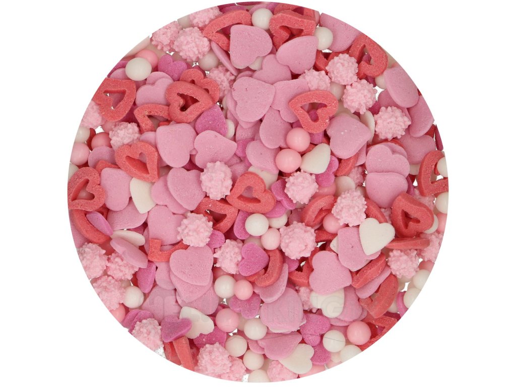 Táto krásna zmes posypov je ideálna na zdobenie na torty a maškrty s tematikou lásky. Zmes je ideálna na Valentína alebo Deň matiek.