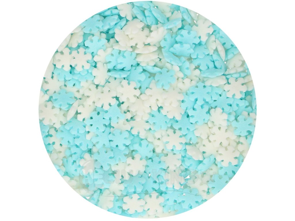 Jednoducho premeňte svoje domáce dobroty na zimnú krajinu zázrakov s týmito snehovými vločkami. Snehové vločky modré a biele sú jedlou dekoráciou a je možné nimi ozdobovať torty, zákusky, muffins, donuts alebo cupcakes, s vločkami dotvoríte detaily na tortách so zimnou alebo vianočnou tématikou. Je možné ich pripevňovať jedlým lepidlom, kráľovskou glazúrou alebo čokoládou.