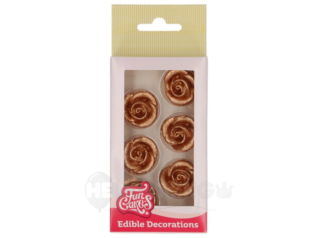 Dodajte svojim dezertom elegantný a luxusný vzhľad s cukrovými dekoráciami FunCakes v tvare bronzovo-zlatých ruží. Tieto hotové dekorácie zo sugar paste sú ideálne na ozdobenie tort, cupcakes alebo sušienok a pomôžu vám rýchlo vytvoriť krásny tematický dezert. Stačí ich jednoducho položiť na krém, polevu alebo royal icing a vaše sladké výtvory získajú profesionálny vzhľad. Elegantné bronzovo-zlaté ruže sú perfektné na Valentína, Deň matiek, svadobné torty alebo slávnostné príležitosti.