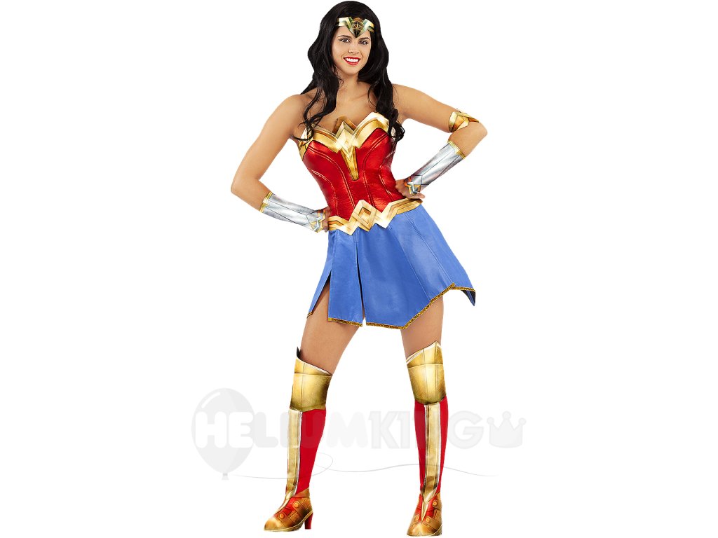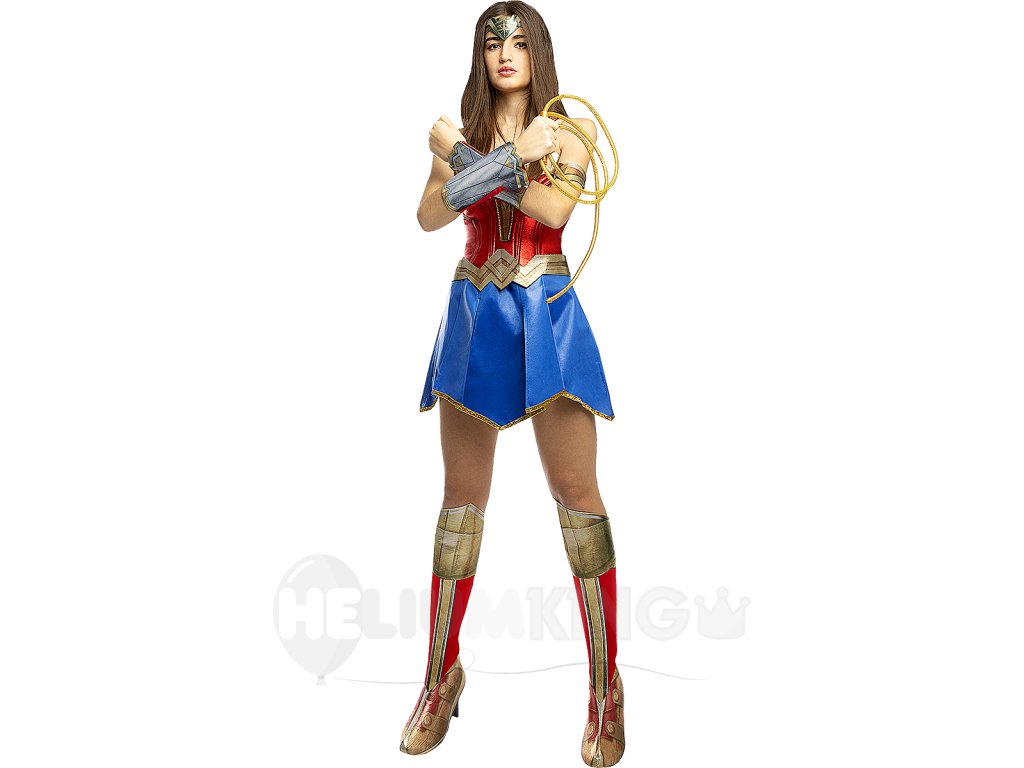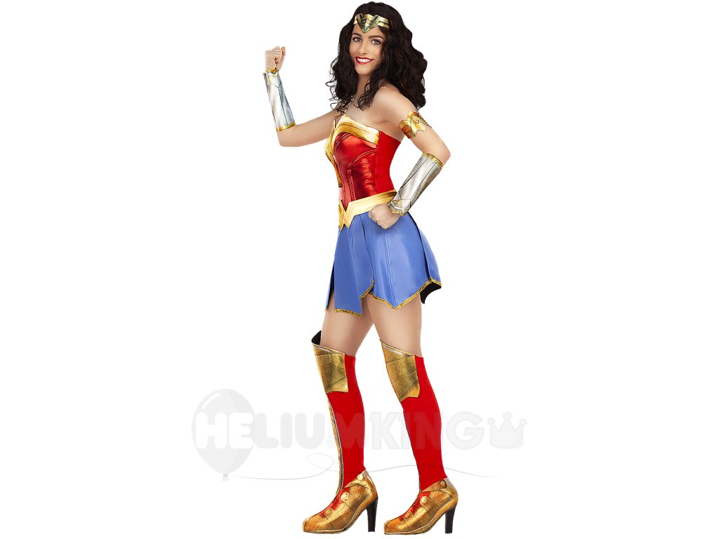 Predstavujeme vám kostým Wonder Woman, ktorý vás premení na superhrdinku s úžasným štýlom! Tento kostým obsahuje všetko, čo potrebujete na záchranu sveta a vyzeranie skvele pri tom. Šaty so sukňou a šortkami sú pripravené na akciu, zatiaľ čo opasok a náramky dodajú vášmu vzhľadu extra šmrnc. Silikónové pásiky zabezpečia, že všetko zostane na svojom mieste, aj keď budete bojovať proti zlu. Diadém vám dodá kráľovský vzhľad a návleky na topánky dokončia váš superhrdinský outfit. Dostupné vo veľkostiach: