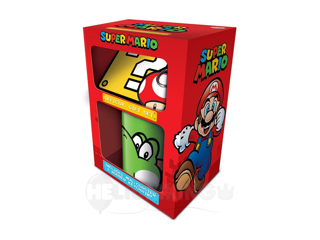 Táto vkusná darčeková sada urobí radosť všetkým fanúšikom Super Mária. Potlač s legendárnou videohrou nesie hrnček, podtácka a kľúčenka, všetko zabalené v peknej krabičke s priehľadnou stenou.