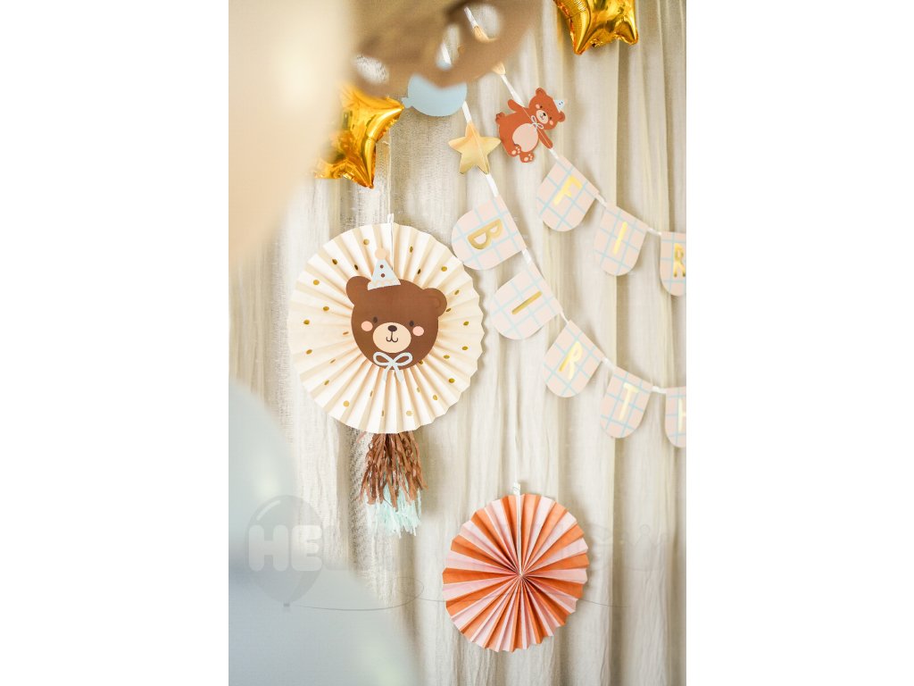 Roztomilé dekoračné rozety s motívom medvedíka sú ideálnou výzdobou na detskú oslavu, krstiny, baby shower alebo prvé narodeniny. Vytvoria jemnú a milú atmosféru a krásne doplnia tematickú výzdobu. Balenie obsahuje 2 kusy roziet, ktoré jednoducho rozložíte a zavesíte na stenu, nad stôl alebo do fotokútika. Sú ľahké, skladné a okamžite dodajú priestoru slávnostný vzhľad. Perfektný doplnok pre všetkých, ktorí chcú vytvoriť nežnú a štýlovú detskú párty.