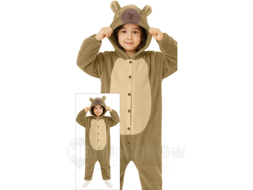 Mäkučký overal s roztomilou kapybarou kapucňou zaručí, že sa každý usmeje už na prvý pohľad. Ideálny na karneval, oslavy alebo len tak na domáce šantenie. Stačí obliecť a dobrodružstvo môže začať – kapybara je predsa kamarát každého zvieratka aj človeka!