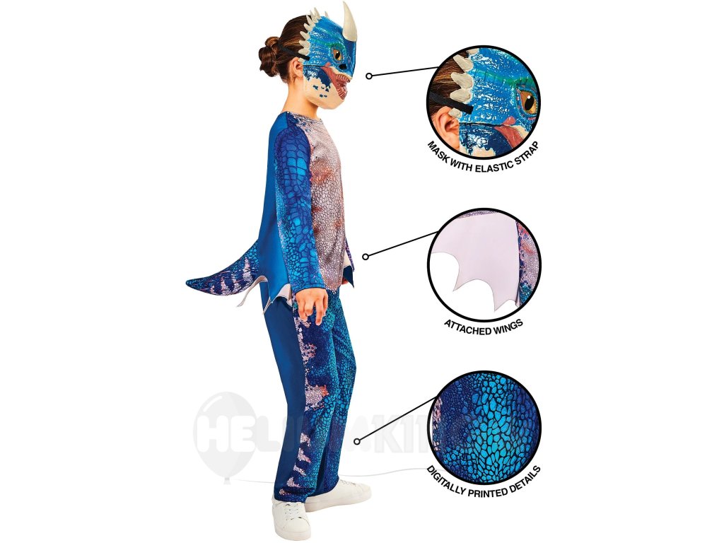 Kostým je farebný, pohodlný a doplnený o parádnu masku, vďaka ktorej bude každý malý drak vyzerať naozaj neporaziteľne. Či už sa chystáte na karneval, narodeninovú oslavu alebo len tak na dračie dobrodružstvo doma, s týmto kostýmom zažijete kopec zábavy a smiechu. Pripraviť sa, pozor, vzlietame!