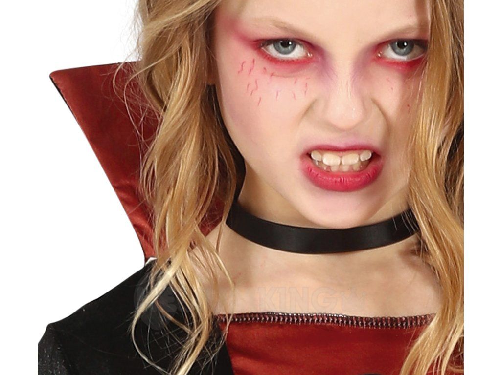 Oblečte Vaše dieťa do strašidelného kostýmu, vďaka ktorému sa z nej nachvíľu stane Upírka. Kostým upírky je skvelý ako halloweensky kostým, alebo ako kostým na karneval.