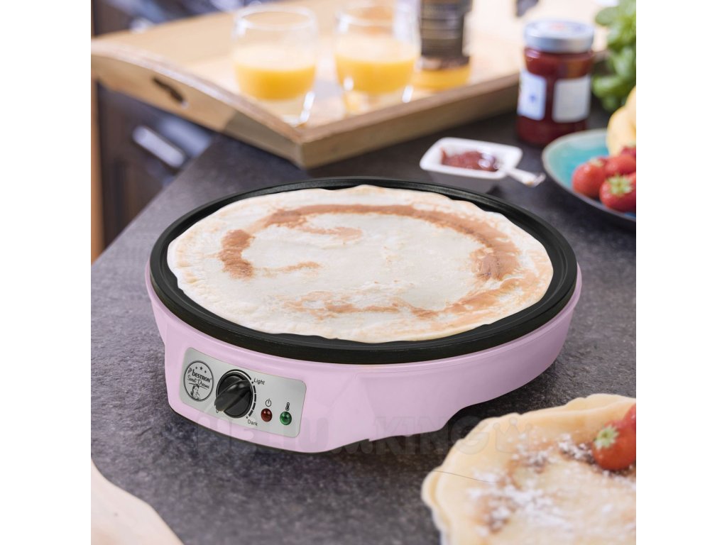 Šikovný pomocník na výrobu tých najlepších paciniek či CRÊPES. Elektrický palacinkovač na domáce použitie je vybavený termostatom na reguláciu a kontrolu ak je palacinka hotová. Pečiaca plocha je je vyrobená z kvalitného materiálu s nepriľnavým povrchom, ktorý sa jednoducho čistí. Palacikovač obsahuje nástroj na roztieranie cesta a špachtlu.