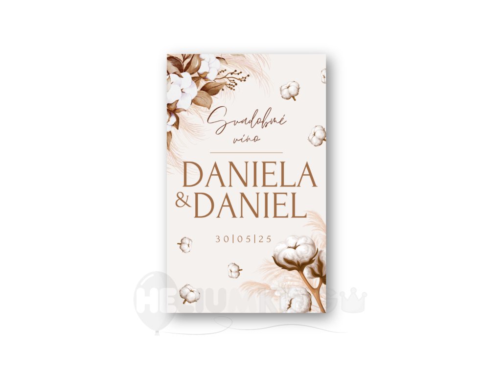 Nálepka je navrhnutá s láskou a dôrazom na detail, aby sa stala neodolateľným doplnkom pre Vaše svadobné víno – harmonická kombinácia elegancie, prírodných prvkov a slobody Boho štýlu.