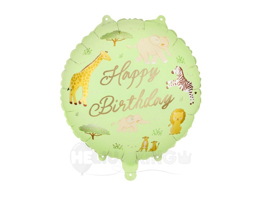 Fóliový balón Happy Birthday Safari s priemerom 35 cm je veselá dekorácia, ktorá skvele oživí každú narodeninovú oslavu. Farebný safari motív v kombinácii s nápisom „Happy Birthday“ vytvára hravú atmosféru, ideálnu pre detské párty aj tematické oslavy. Balón je určený na plnenie vzduchom alebo héliom a po nafúknutí si dlho zachová svoj tvar aj farby. Perfektne sa hodí ako samostatná dekorácia alebo súčasť väčšej balónovej výzdoby.