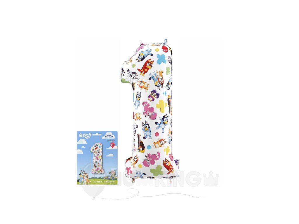 Urobte z oslavy prvých narodenín nezabudnuteľnú udalosť s fóliovým balónom v tvare čísla 1 s obľúbeným motívom Bluey. Tento farebný balón je ideálnou dekoráciou na detskú narodeninovú oslavu, fotenie alebo výzdobu párty.