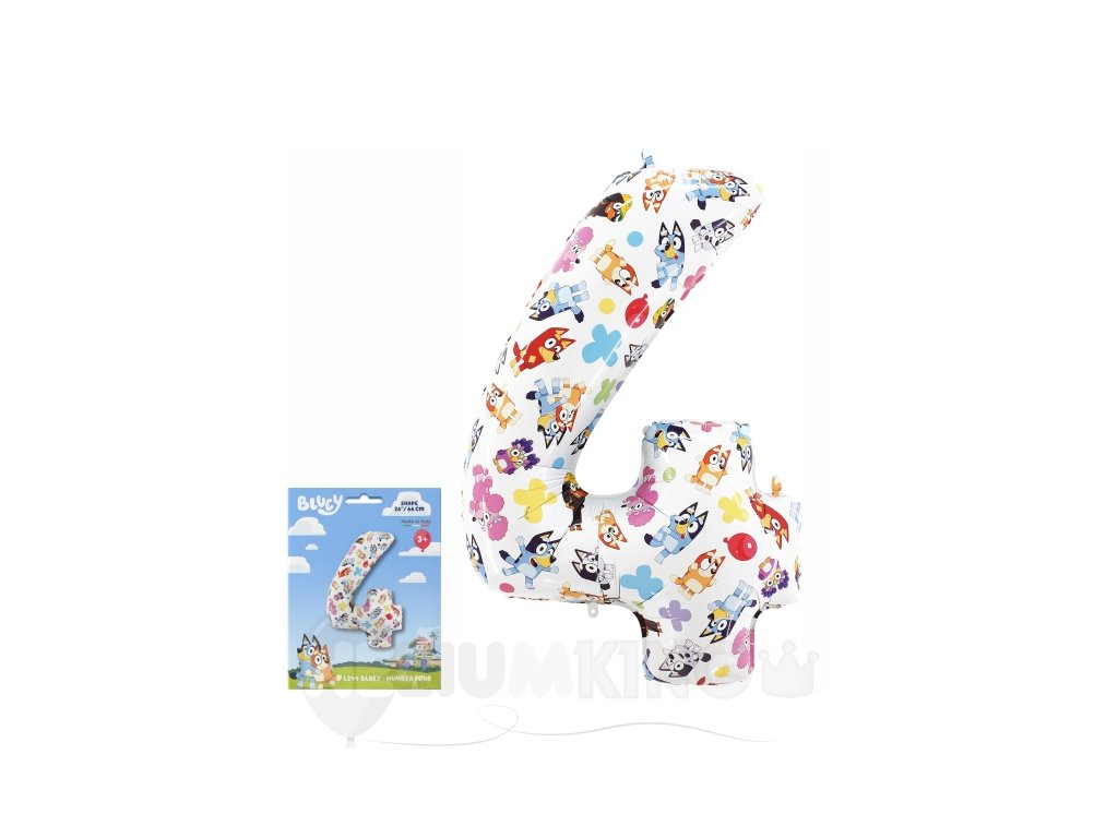 Urobte z oslavy štvrtých narodenín nezabudnuteľnú párty s fóliovým balónom v tvare čísla 4 s motívom Bluey. Tento veselý balón je ideálnou dekoráciou na výzdobu detskej oslavy, stolu alebo ako súčasť fotokútika.