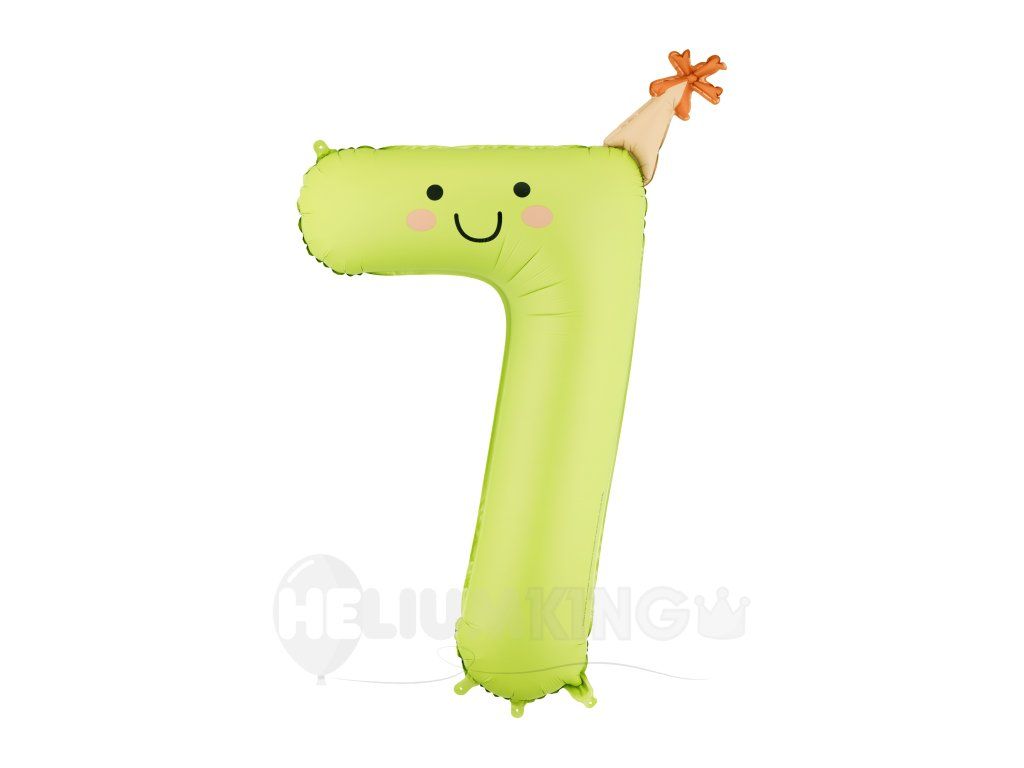 Fóliový balón narodeninové číslo 7 - Zelený s klobúčikom 86 cm