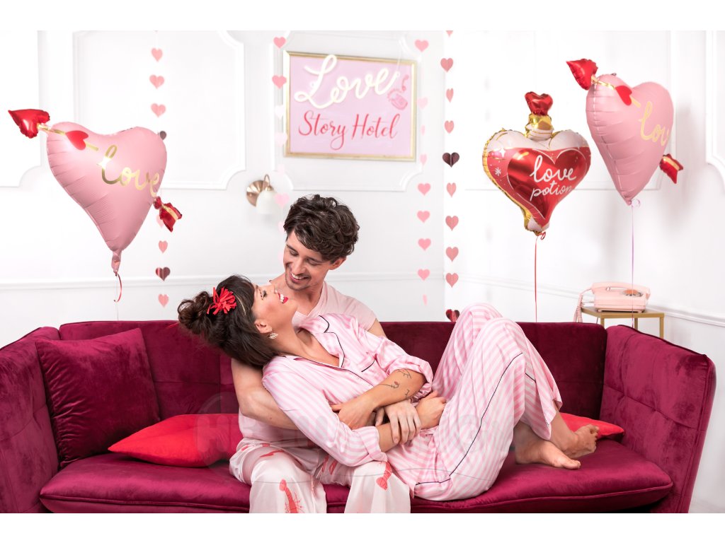 Zaľúbený až po uši? Dajte to najavo štýlovo! Fóliový balón v tvare srdca so šípom a nápisom „Love“ je tu na to, aby rozveselil každú romantickú chvíľku.