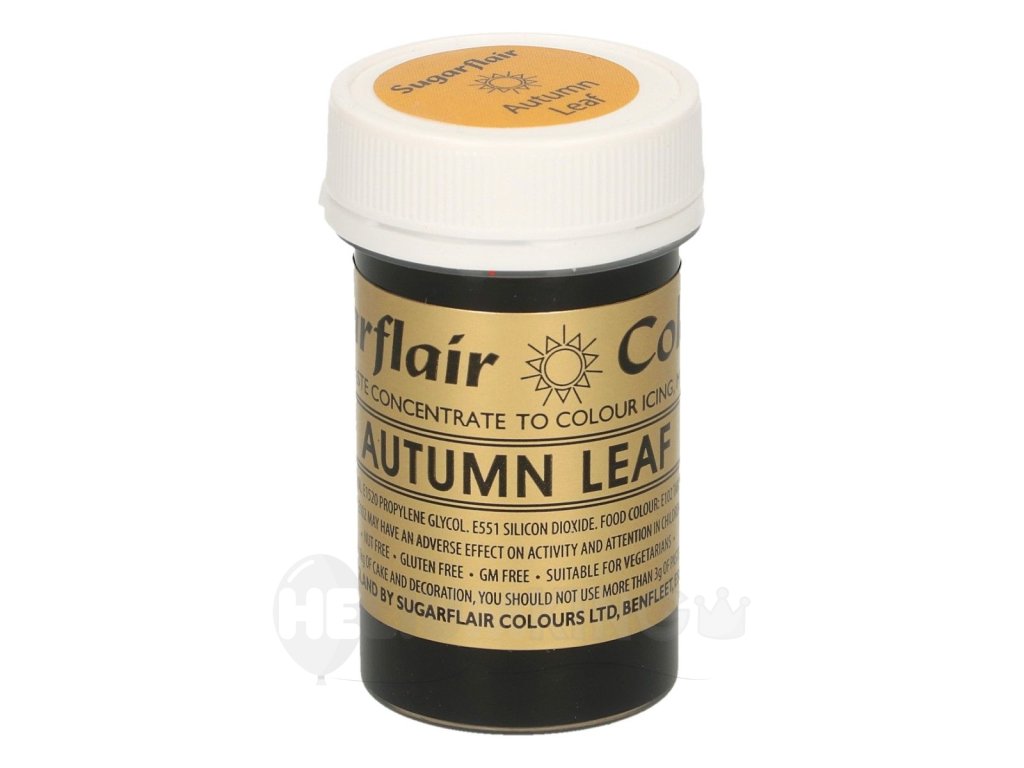 Gélová farba Autumn Leaf je koncentrovaná farba vhodná na farbenie poťahovacej alebo modelovacej hmoty. Oranžová gélová farba sa výborne hodí na torty s prírodnou tématikou. Produkt neobsahuje lepok a geneticky modifikované suroviny.