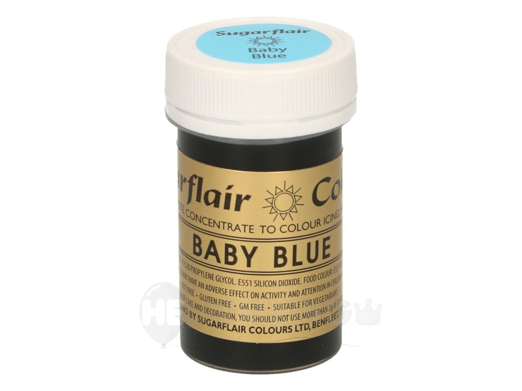 Gélová modrá farba Baby Blue je koncentrovaná farba vhodná na farbenie poťahovacej alebo modelovacej hmoty. Modrá gélová jedlá farba sa výborne hodí na chlapčenské torty. Produkt neobsahuje lepok, geneticky modifikované suroviny a je vhodný vegetariánov.
