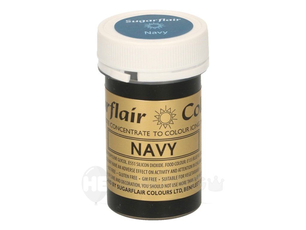 Gélová čierna farba Navy je koncentrovaná farba vhodná na farbenie poťahovacej alebo modelovacej hmoty. Modrá gélová jedlá farba sa výborne hodí na elegantné a luxusné torty a dezerty. Produkt neobsahuje lepok, geneticky modifikované suroviny a je vhodný pre vegánov a vegetariánov.