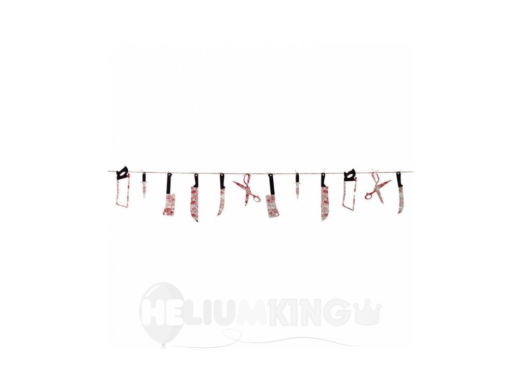 Chystáte strašidelnú Halloweensku párty? Vytvorte neprekonateľnú Halloweensku atmosféru, pomocou rôznych strašidelných dekorácií. Táto Girlanda s motívom krvavých zbraní, je skvelý párty doplnok každej Halloweenskej výzdoby.