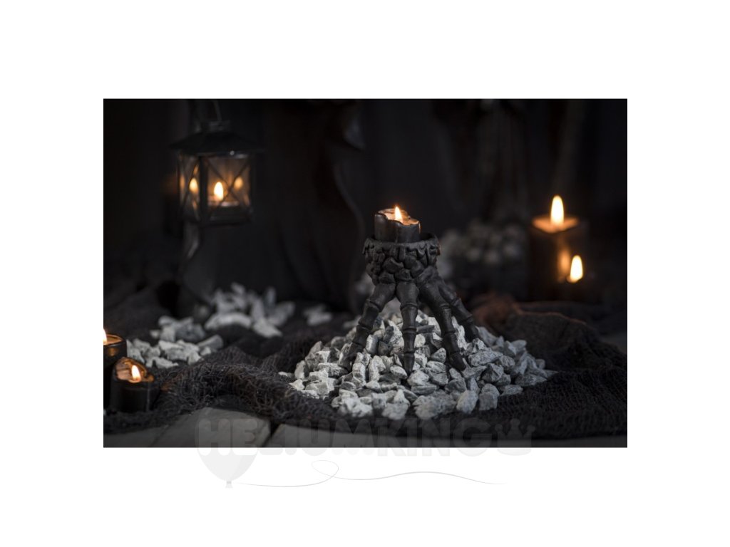 Jedinečný stojan navrhnutý na sviečky , svojim dizajnom dokonale zapadá do Halloweenskej atmosféry. Je vyrobený z kvalitného materiálu, stojan je pevný a stabilný, čo zaručuje bezpečné použitie. Svietnik v tvare ruky nielenže skvele vyzerá, ale aj pridáva šmrnc halloweenskym dekoráciám. Je ideálny na ozdobenie stola, krbovej rímsy alebo okenného parapetu, kde vytvorí desivú atmosféru Halloweenu.