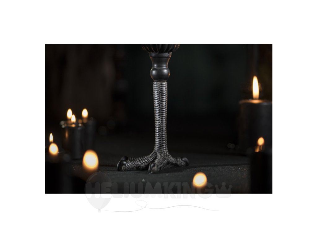Jedinečný stojan je navrhnutý na kónické sviečky, svojim dizajnom dokonale zapadá do Halloweenskej atmosféry. Je vyrobený z kvalitného materiálu, stojan je pevný a stabilný, čo zaručuje bezpečné použitie. Svietnik v tvare vtáčej nohy nielenže skvele vyzerá, ale aj pridáva šmrnc halloweenskym dekoráciám. Je ideálny na ozdobenie stola, krbovej rímsy alebo okenného parapetu, kde vytvorí desivú atmosféru Halloweenu.
