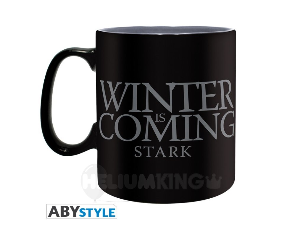 Hrnček s kapučínkom, ktorý je pre fanúšikov populárnej HBO show nevyhnutnosťou, predstavuje ikonickú frázu „Zima sa blíži“ a symbol Dire vlka, ktorý je synonymom Starkovho domu.