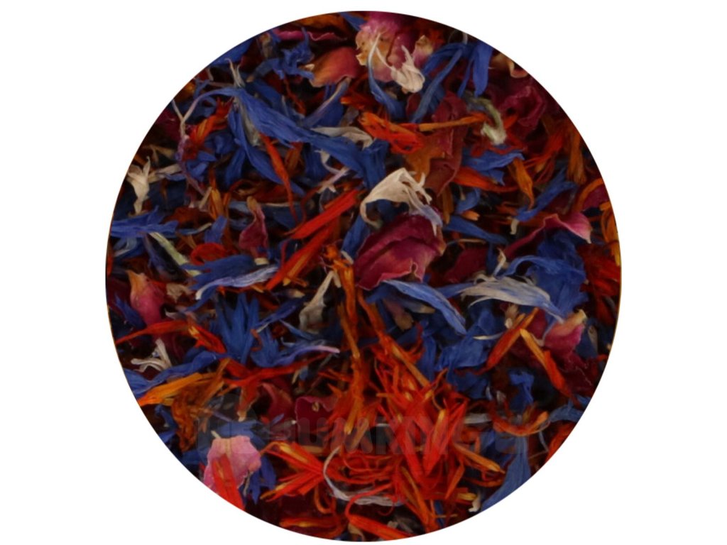 Zloženie: lupene ruží (sušené), nevädze (sušené), svetlica farbiarska (sušená).