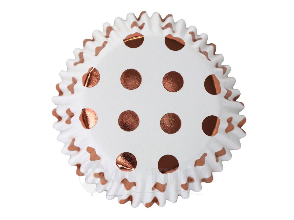Košíčky na pečenie - Biele s ružovozlatými bodkami 30 ks