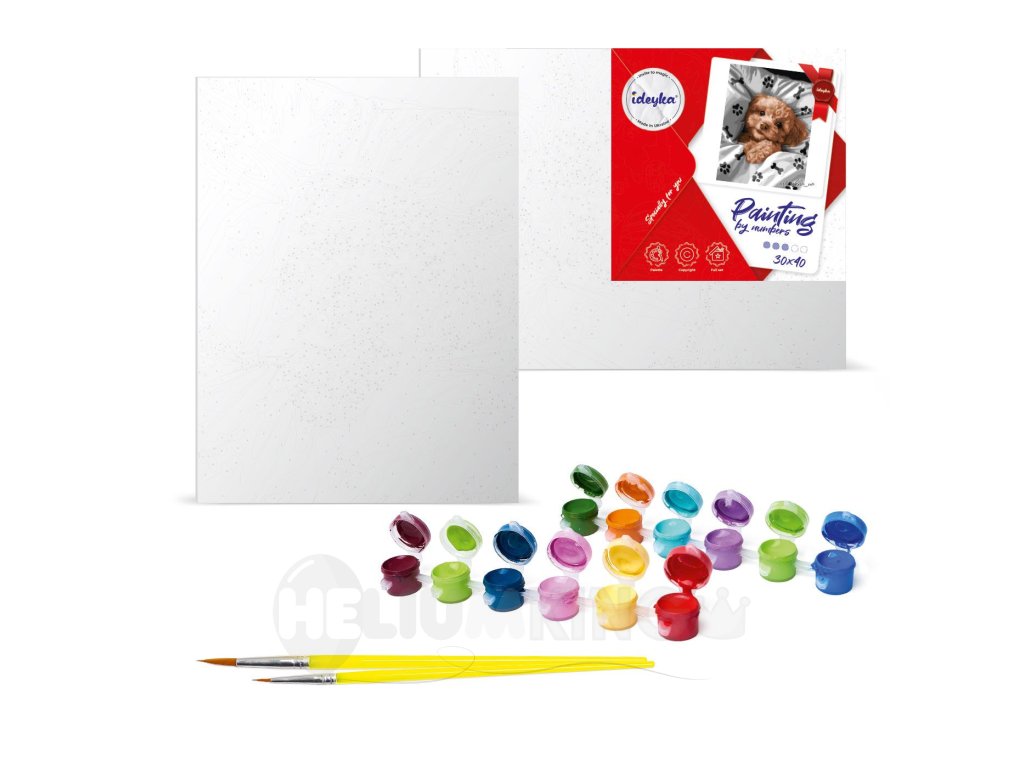 ✅ Predkreslené plátno na ráme (30 x 40 cm) s očíslovanými políčkami