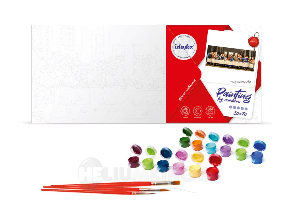 Objavte v sebe maliarskeho majstra s naším veselým setom Maľovanie podľa čísel – Posledná večera ©Leonardo da Vinci 30 x 70 cm! Vďaka tejto zábavnej sade sa môžete na chvíľu stať Leonardom a vytvoriť si vlastnú verziu legendárneho obrazu. Stačí nasledovať čísla, ponoriť štetec do farby a sledovať, ako pod vašimi rukami ožíva slávna scéna!
