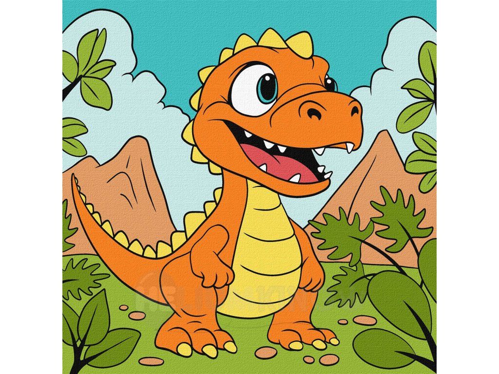 Vytvorte si veselý a hravý obraz s motívom šťastného dinosaura od ©art_selena_ua. Tento milý dizajn poteší najmä deti a všetkých milovníkov farebných a pozitívnych ilustrácií.
