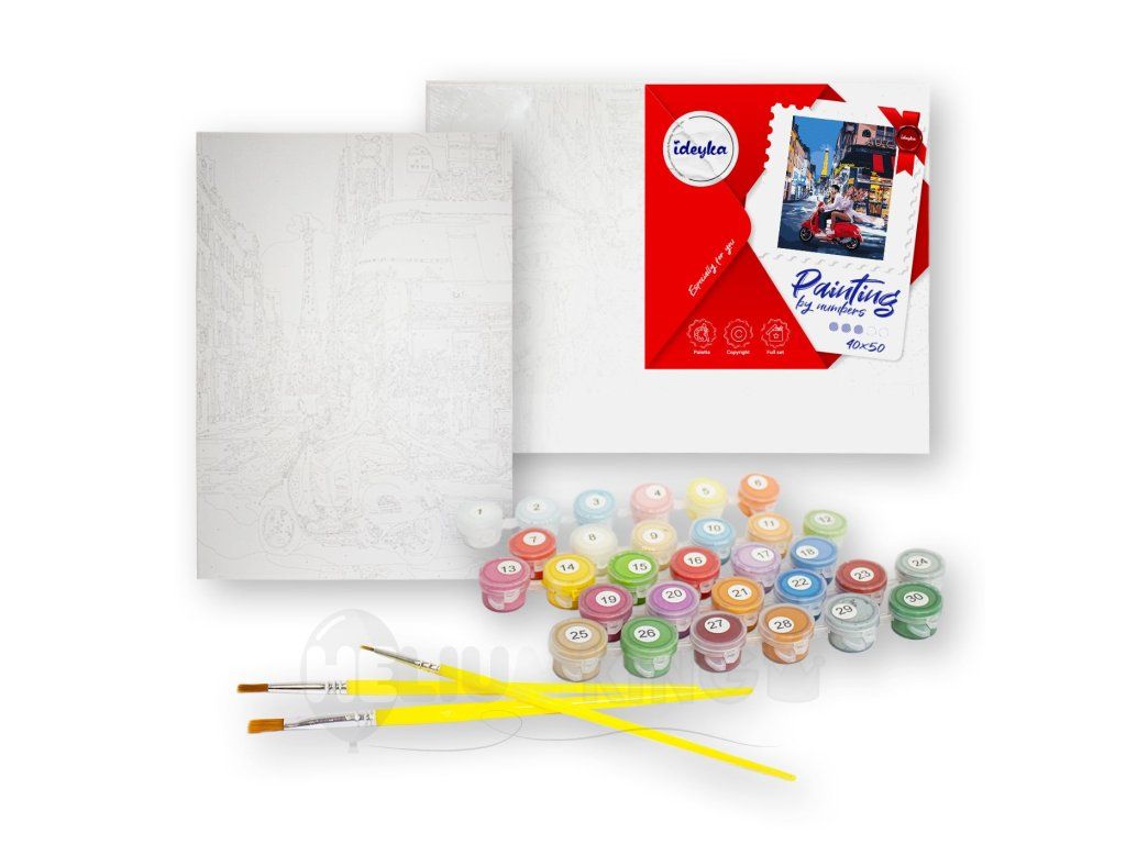 ✅ Predkreslené plátno na ráme (40 x 50 cm) s očíslovanými políčkami