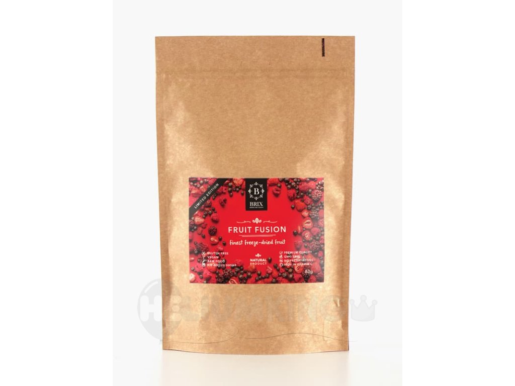Zloženie: mrazom sušená čučoriedka 25%, černica 25%, čierna ríbezľa 25%, malina 12,5%, jahoda 12,5%