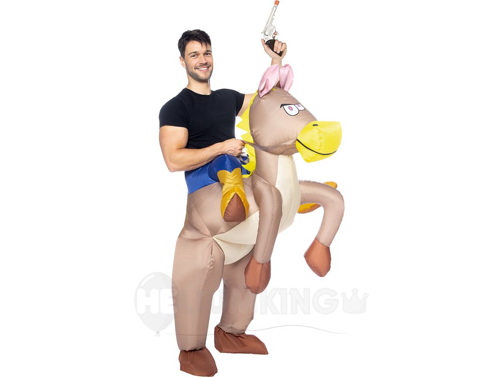 Predstavujeme vám kostým s nafukovacím koňom pre dospelých – kostým, ktorý zaručene rozosmeje každého na párty! Tento veselý outfit vás premení na kovboja, ktorý si užíva jazdu na svojom vernom nafukovacom tátošovi.