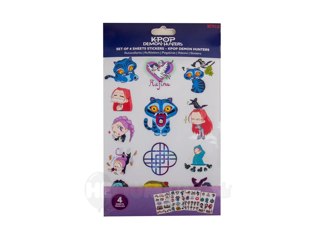 Štýlové nálepky s motívom KPop Demon Hunters potešia každého fanúšika tejto populárnej témy. Sú ideálne na ozdobenie zošitov, diárov, mobilov, notebookov či darčekových balení. Vďaka výrazným farbám a detailnému spracovaniu dodajú vašim veciam originálny a trendový vzhľad. Skvelý doplnok pre deti, tínedžerov aj všetkých milovníkov K-Pop.