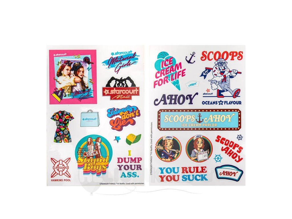 Priprav sa na poriadnu dávku dobrodružstva z Hawkinsu! S týmito nálepkami zo 3. série Stranger Things môžeš ozdobiť zošit, mobil, notebook alebo čokoľvek, čo potrebuje trochu viac 80’s štýlu a tajomnej atmosféry. Dustin, Eleven, Demogorgon či zmrzlinový stánok Scoops Ahoy – všetci čakajú, kým ich nalepíš na svoje obľúbené veci. Vstúp do sveta, kde je všetko možné, a ukáž všetkým, že si pravý fanúšik Stranger Things!