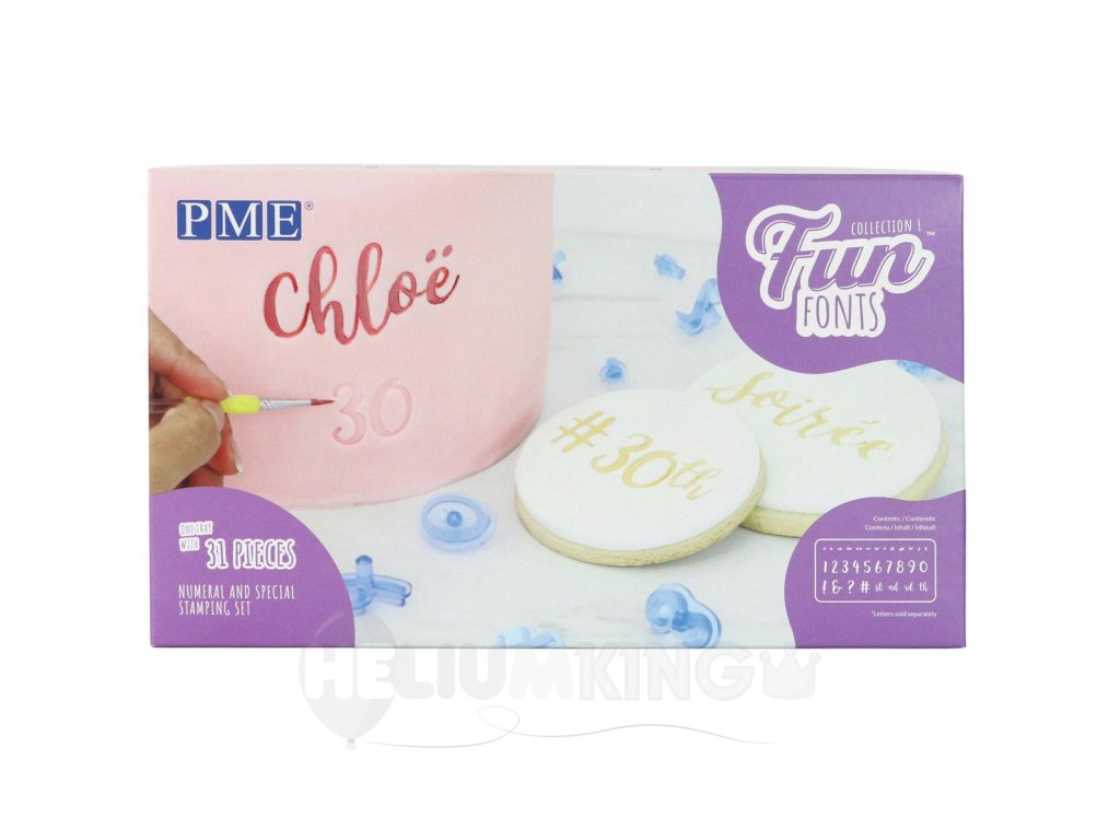 Vytvárajte personalizované torty a zákusky pomocou ozdobných čísel a znakov, ktoré sú vyrobené z bezpečného potravinárskeho plastu. Pečiatky je možné použiť na marcipán, fondán, gumpasty, modelovacie hmoty a čokolády. Reliéfne čísla a znaky je možné po odtlačení vyfarbiť potravinárskymi farbivami, jedlými fixami alebo perami.