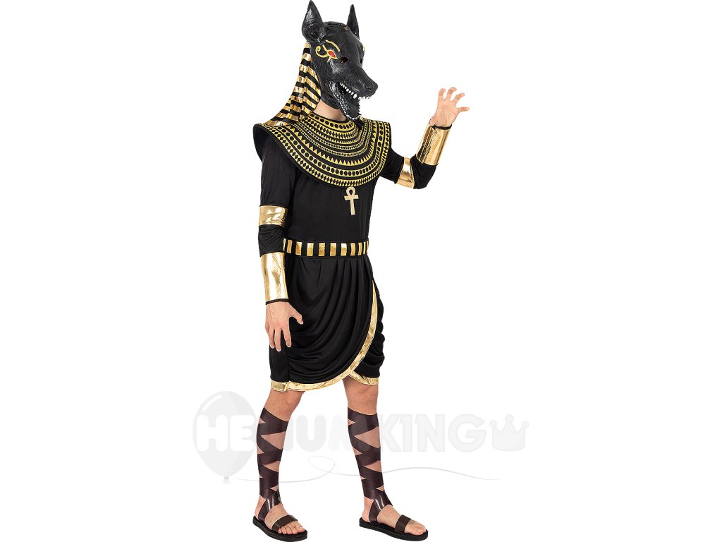 Kostým obsahuje rúcho s náhrdelníkom, opaskom, náramenníkmi, rukávmi a maskou, ktoré spolu vytvárajú autentický vzhľad Anubisa. Rúcho je navrhnuté tak, aby poskytovalo maximálne pohodlie počas celej noci tancovania a zábavy. Náhrdelník a opasok dodávajú kostýmu elegantný vzhľad, zatiaľ čo náramenníky a rukávy pridávajú dramatický efekt. A samozrejme, maska Anubisa je tou čerešničkou na torte, ktorá vás premení na skutočného boha.