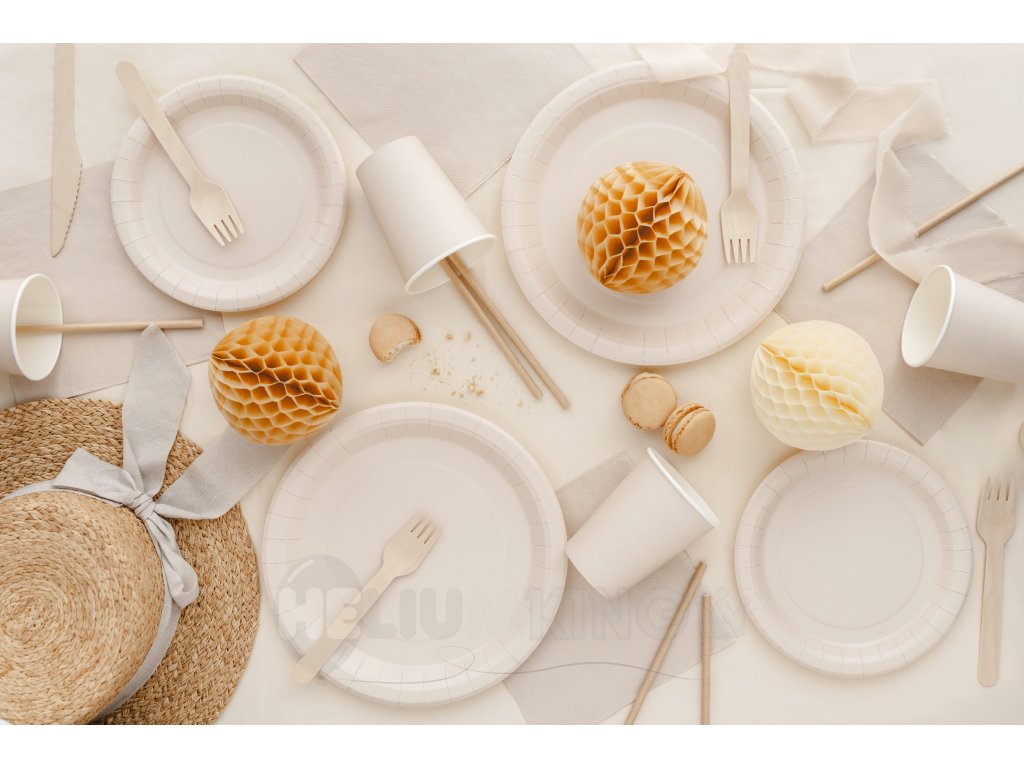 Jednoduché okrúhle papierové taniere v béžovej farbe sú praktickým doplnkom na rôzne oslavy, párty, pikniky alebo rodinné stretnutia. Vďaka svojmu univerzálnemu dizajnu sa ľahko kombinujú s rôznymi témami výzdoby. Taniere sú ideálne na podávanie koláčov, dezertov, občerstvenia alebo menších jedál a zároveň uľahčujú upratovanie po oslave.