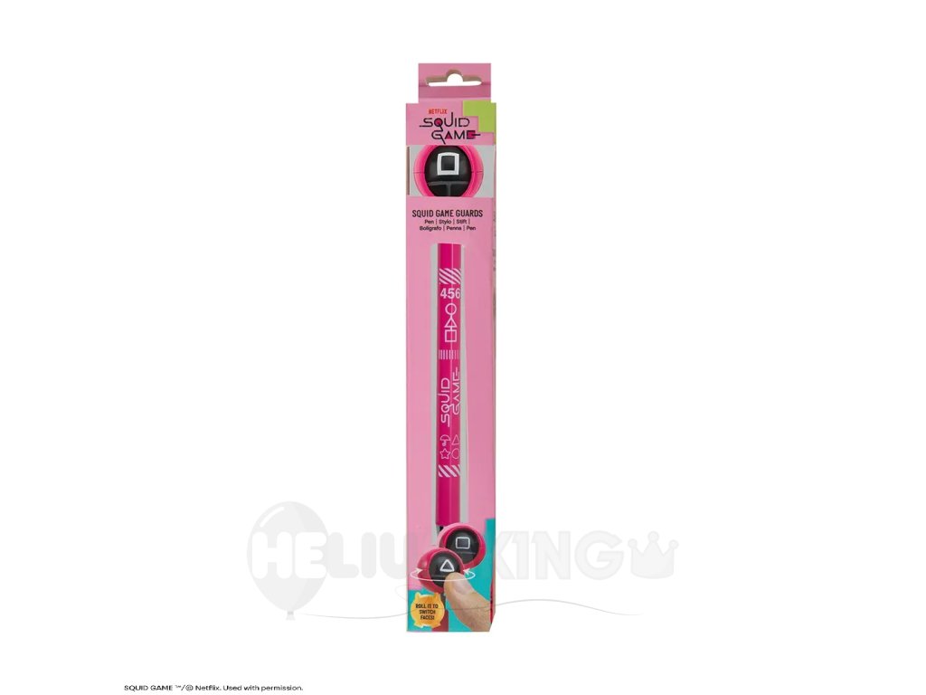 Píšte štýlovo s perom inšpirovaným svetovým fenoménom Squid Game! Tento originálny kúsok zaujme každého fanúšika napínavého seriálu. Na vrchu pera sa nachádza otáčací symbol v štýle známych herných ikon (kruh, trojuholník, štvorec), ktorý dodáva štýlu a zábave nový rozmer. Perfektné do školy, do kancelárie alebo ako zberateľský doplnok.