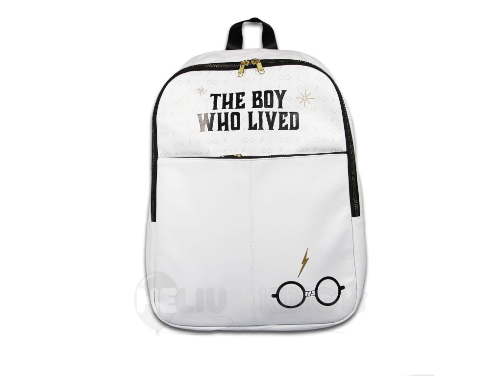 Čarovný batoh, ktorý je vhodný na nosenie potrieb do školy, práce alebo von. Obsahuje ilustráciu Harryho okuliarí a jazvy a nesnie známy nápis "Boy Who Lived". Bude perfektným darčekom pre milovníkov Harry Pottera.