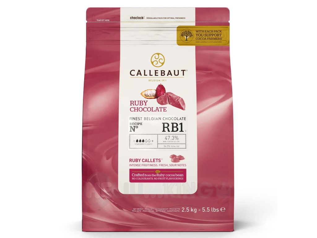 Ružová čokoláda Ruby Callebaut má já jemnú svetlú ružovú farbu a ovocnú chuť. Je vyrobená z rubínových kakaových bôbov a neobsahuje žiadne farbivá či arómy. Svojou unikátnosťou sa hodí pri dekorovaní dievčenských,dámskych, elegantných tort a dezertov.