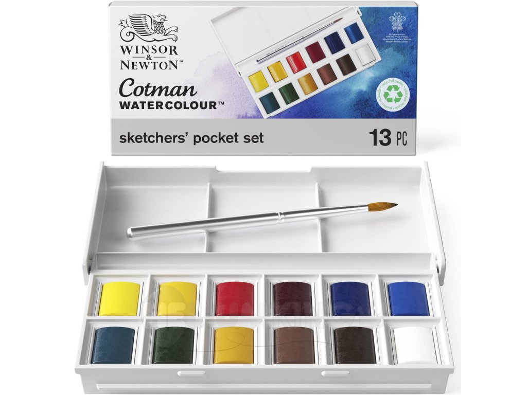 Sada akvarelových farieb 12ks pol panvičiek + 1 štetec Winsor & Newton