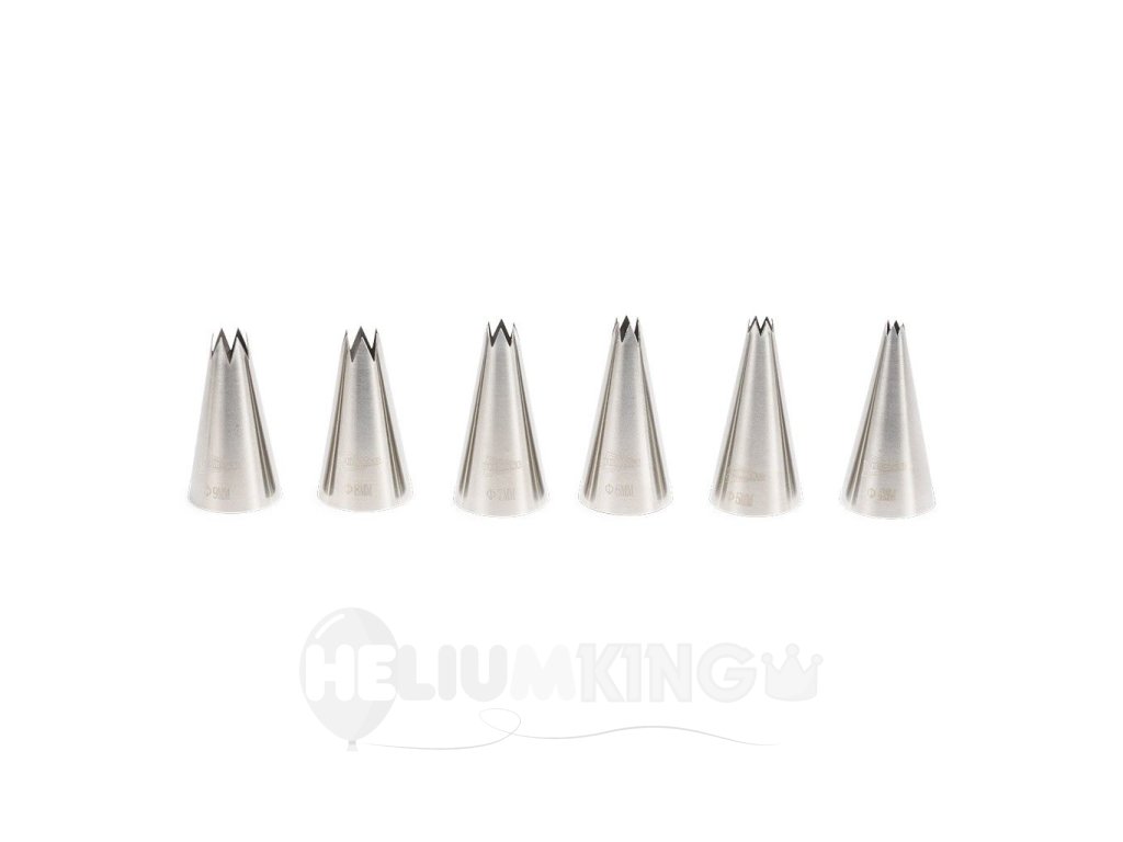 Praktická sada šiestich cukrárskych špičiek, s ktorými vytvoríte zdobenia pomocou maslového alebo čokoládového krému. Krém môžete prefarbovať potravinárskymi farbivami a tak prispôsobiť farbu krému k farbe cesta dezertov. Ideálne pri tvorbe cupcakes alebo krémových dezertov. Krémom môžete ozdobovať aj okraje alebo obvody tort.