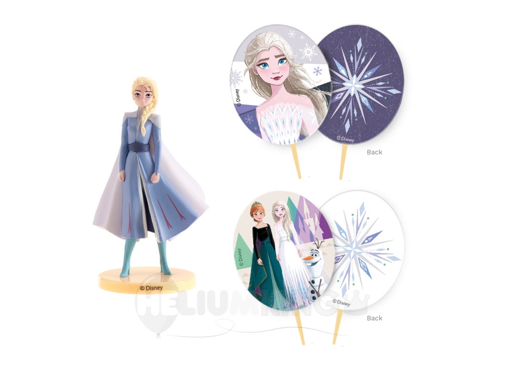 Figúrka na tortu v podobe princeznej Elsy je krásnym doplnkom narodeninovej torty v štýle rozprávky Frozen. Figúrka nie je určená na konzumáciu, ale jej uchovanie z nej vytvorí pamiatku na krásne narodeniny alebo oslavu. Sada obsahuje zápichy do torty s Frozen obojstrannou potlačou.
