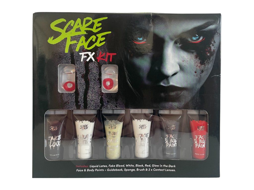 - obsah: 1 x falošná krv, 1 x latex na tvár, 1 x farba svietiaca v tme, 3 x farba na tvár a telo, 1 x šošovky, štetec a hubka na aplikáciu